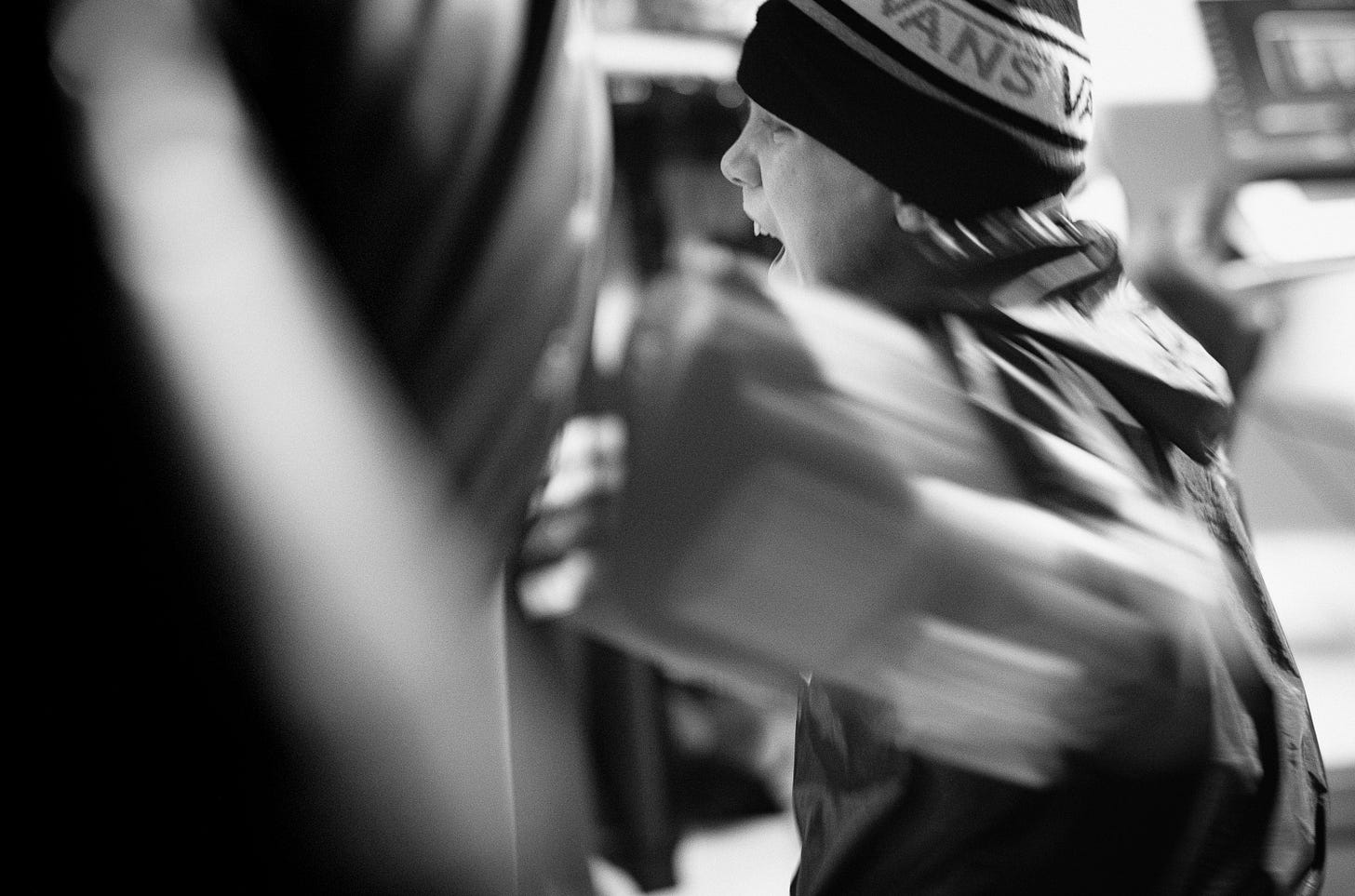 And, much like street photography, I have little control over the circumstances: they train a few times per week in the mid-to-late evenings, so what I get for light is what I have to work with. The garage faces the east, leading us to lose light very quickly as the sessions go on.